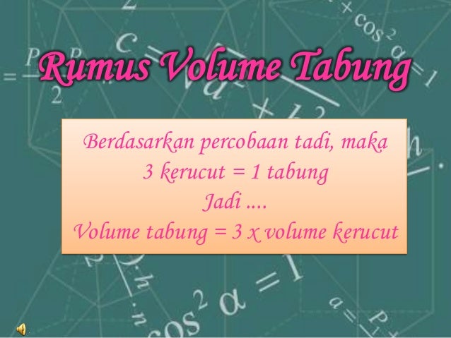 Maybe you would like to learn more about one of these? Rumus mencari volume kerucut dan tabung. Check spelling or type a new query. We did not find results for: